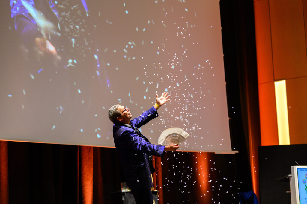 Zwischen den einzelnen Programmpunkten lockerte der gehörlose Magier Fralau die Stimmung durch magische Erlebnisse auf.